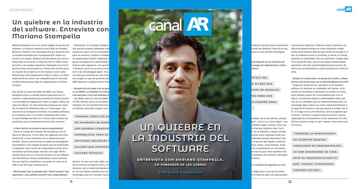 La nueva edición de la revista digital de CanalAR incluye una entrevista exclusiva con Mariano Stampella, cofundador de Las Cabras, quien analiza cómo la inteligencia artificial está generando un quiebre profundo en la industria del software.