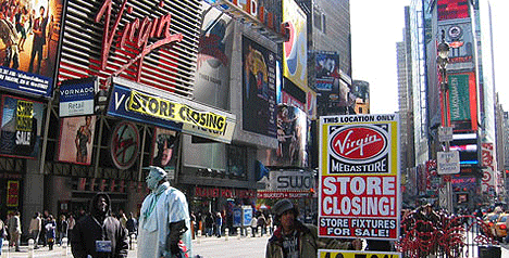 La ciudad de Nueva York fue protagonista de un hecho que podría significar un cambio de paradigma en la industria de la música. El domingo pasado la cadena Virgin Records bajó las persianas de su último local en Estados Unidos y remató el 90% de sus productos y mobiliario. Según un estudio, los cierres de este tipo de comercios se debe al bajo nivel de ventas en soportes físicos, consecuencia del aumento de la preferencia por los formatos digitales.